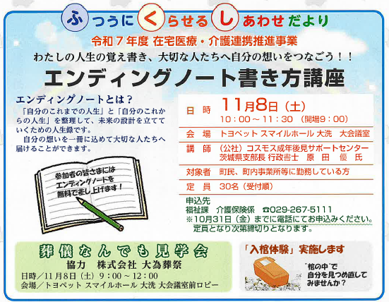 トヨペットスマイルホール大洗(茨城県大洗町)にて、大洗町福祉課殿主催のセミナーを開催します。