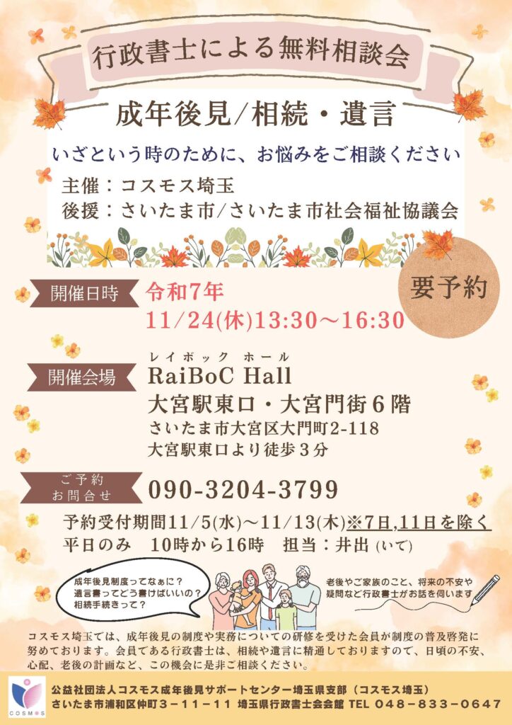 【埼玉】無料相談会開催のお知らせ 令和7年11月24日(月)