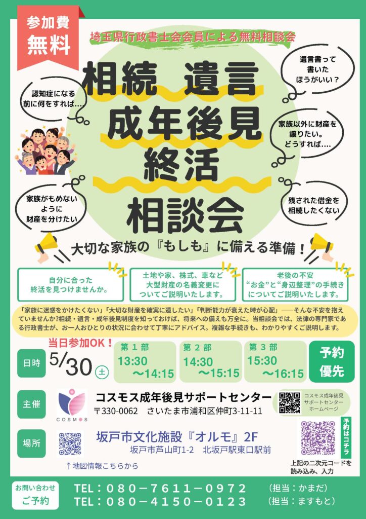 【埼玉】無料相談会開催のお知らせ 令和8年5月30日(土)